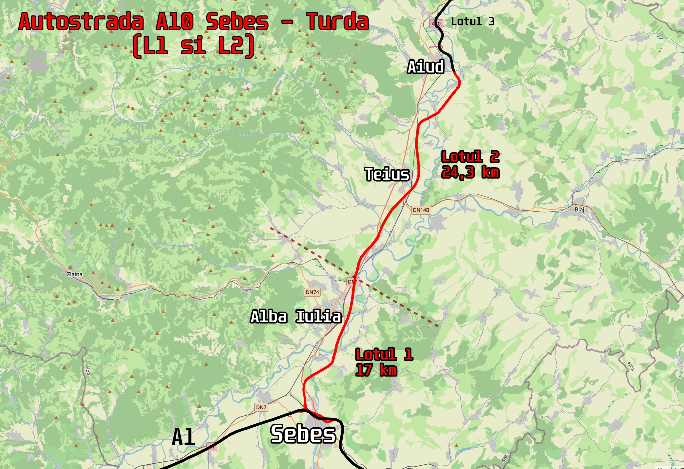 Lot 2 – 24,3 km – Alba Iulia Nord (Pârâul Iovului ) – Aiud (KM 17+000 – KM 41+250)