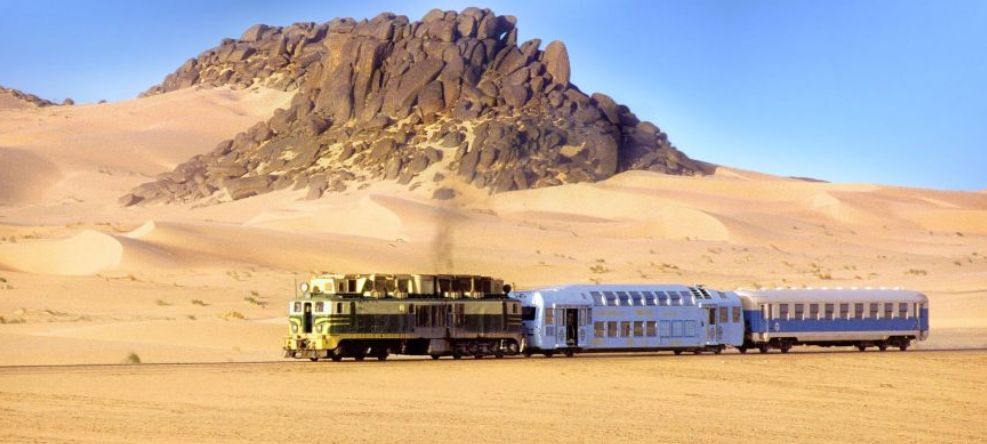 Una dintre cele mai nebunești călătorii cu trenul în Africa este cu Train du Desert în Mauritania, 700 km în 20 de ore. Trenul are 3-4 locomotive diesel, un singur vagon de călători și peste 200 de vagoane de marfă, călători putând să stea chiar și în acestea.