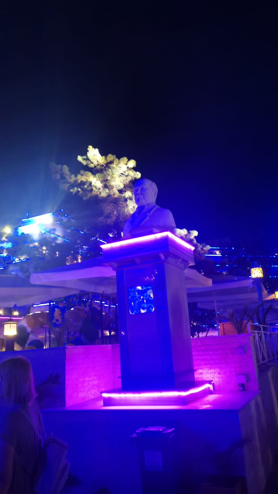 Seara Belvedere, Panoramic, Amfiteatru de la Olimp se luminează cu neoane pe fațadă. Culori fosforescente. Și-n drumul spre mare sunt așezate 3 statui: Mihai Viteazu, Kogălniceanu și Eminescu.