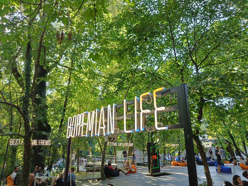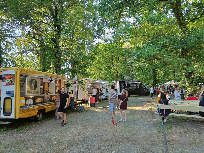 După ce-și continuau drumul, peste pod, dădeau peste zona de food truck, cu produse atât pentru vegetarieni cât și pentru carnivori. Evident, oferta pentru vegetarieni nu era foarte diversificată, dar nu te duci la festival să mănânci, ci să bei ceva, să asculți muzică… adică să te distrezi alături de prieteni, mai ales că era o scenă și pe partea cealaltă, cu alți artiști, cu zone special amenajate pentru a consuma ceva și a te relaxa.