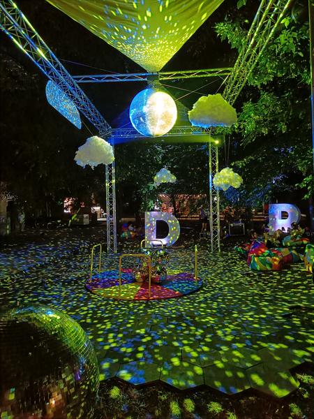 Unul dintre punctele de atracție a fost reprezentat de o lună, amplasată deasupra unui pod care plutește, peste care poți ajunge la o altă scenă. Până să ajungă pe partea cealaltă, tinerii se opreau să-și facă poze în care să se vadă marea bilă ce imită satelitul ce orbitează pământul.