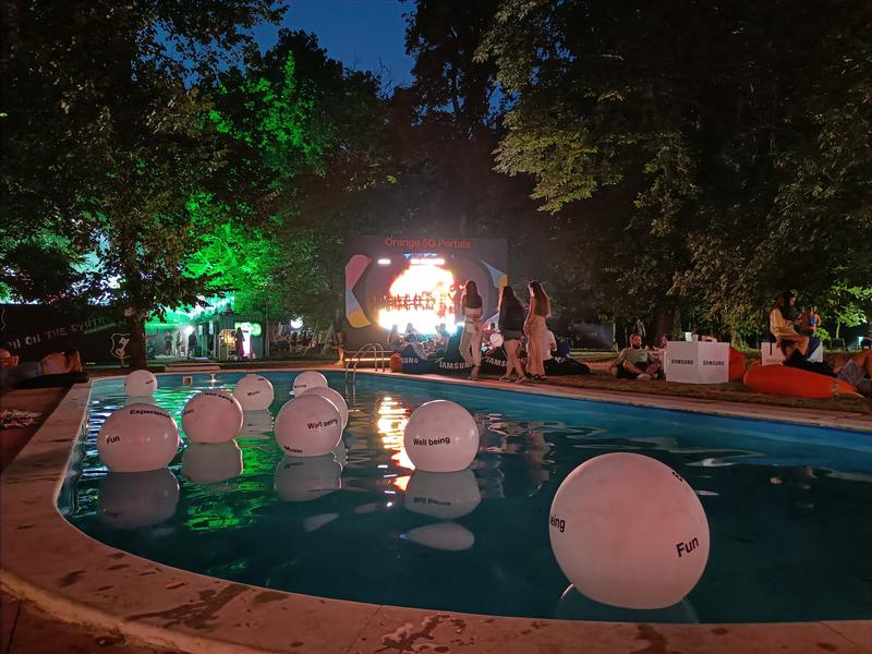 Revenind pe partea cu scena mare, zona destinată sponsorului principal, lângă o mică piscină, este ocupată „la butoane” de copii. Sunt câteva console de jocuri și sunt „foarte ocupați”.