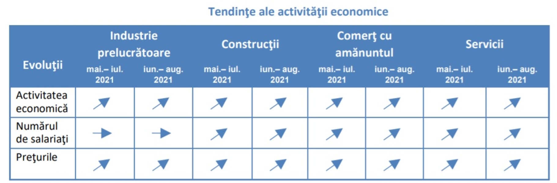 Conform estimărilor din luna iunie 2021, cererea de servicii (cifra de afaceri) va cunoaşte creștere în următoarele trei luni (sold conjunctural +17%). În sectorul de servicii se estimează creștere moderată a numărului de salariaţi (sold conjunctural +7%).