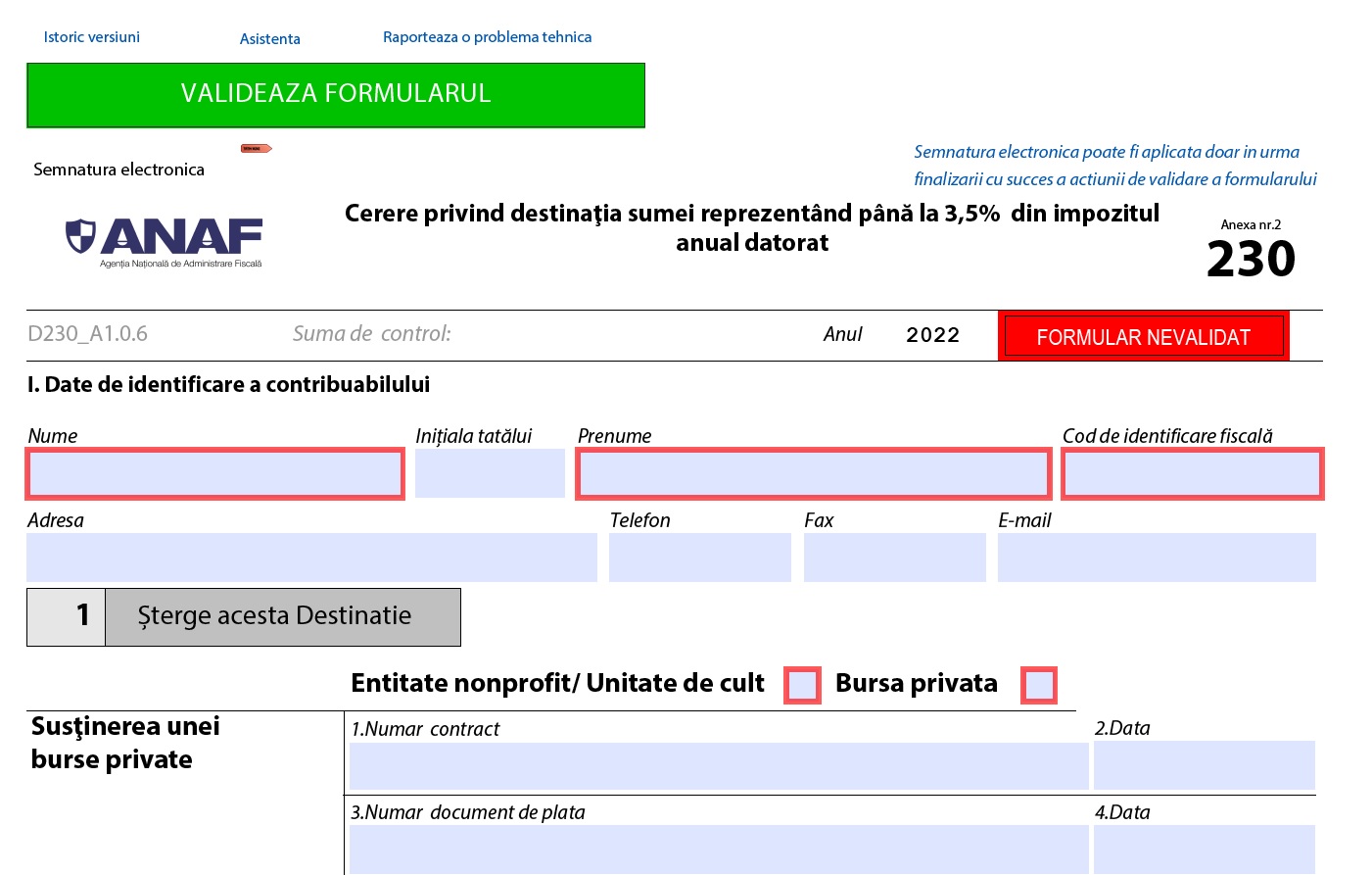 Declarația 230 se găsește pe site-ul ANAF, ori pe site-urile ONG-urilor (unde este precompletată cu principalele informații).