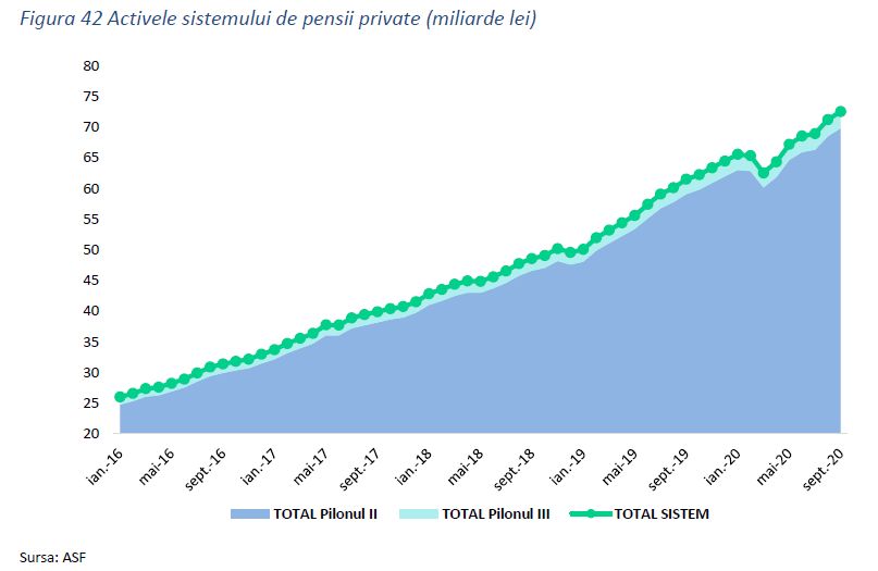 Evoluția sistemului de pensii private a fost pozitivă pe tot parcursul funcționării sale, numărul de participanți și valoarea activelor personale ale acestora crescând în mod constant. Valoarea activelor totale aflate în administrare, la nivelul întregului sistem de pensii private, a atins la finalul lunii septembrie 2020 nivelul de 72,58 miliarde de lei (14,90 miliarde de euro – 6,53% din PIB), cu un număr de 8.104.786 participanți.