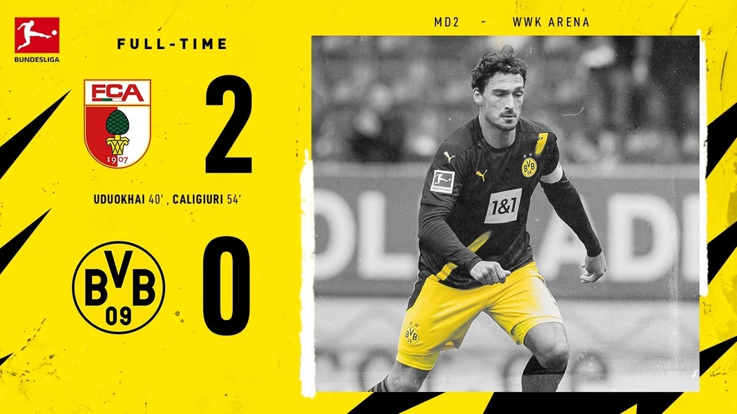 Chiar dacă Borussia a avut o posesie de 80% și 18 șuturi spre poartă (față de 6 ale gazdelor), Uduokhai ’40 şi Caligiuri ’54 au adus victoria lui Augsburg. Vezi aici cele două reușite.