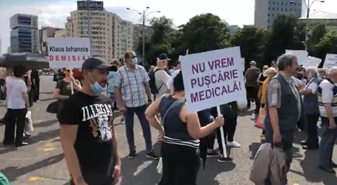 Potrivit Mediafax, protestatarii au purtat pancarte prin care solicitau demisia președintelui Klaus Iohannis, cu mesaje precum „Frica ucide România” sau prin care solicitau ca toți bolnavii să fie tratați în spitale.