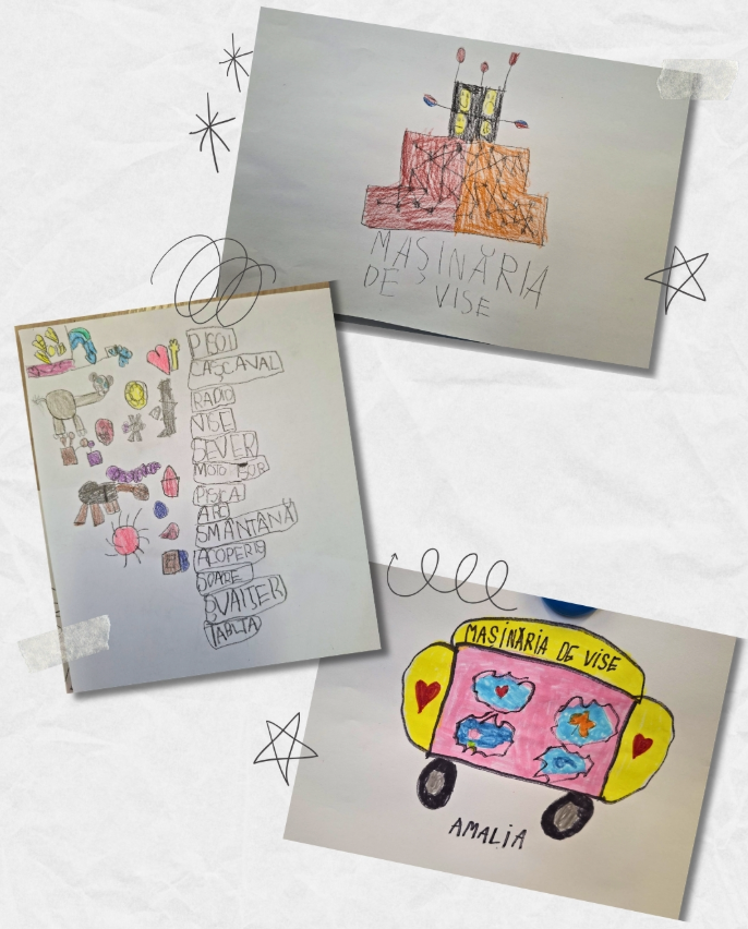 În urmă cu două săptămânii, copii au avut de desenat, după o poveste despre o mașină a viselor, chiar acest obiect.