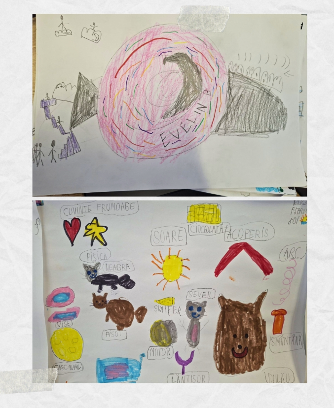 „Cristina Stănciulescu lansează niște întrebări și niște provocări copiilor, iar apoi noi primim desenele lor, pentru că ei ascultă povestea și întrebările. Faptul că desenează e o formă de expresie, o manieră de reflectare a ceea ce tu ți-ai luat din povestea respectivă și ce ți-ai imaginat, ce ai înțeles, cu ce noțiuni și cuvinte și vocabular ai rămas”, explică Andreea Nistor procesul.