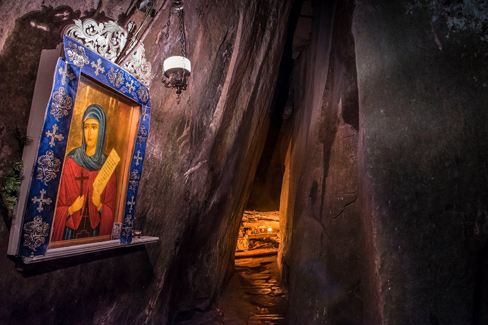 Ascunsă între pereţii acelei stânci, Cuvioasa Teodora şi-a dedicat cu totul viaţa Mântuitorului, nevoindu-se aici timp de 20 de ani. Singurul care ştia de ea era duhovnicul Pavel de la Sihăstria, cel care venea să o spovedească şi să o împărtăşească pe sfântă.