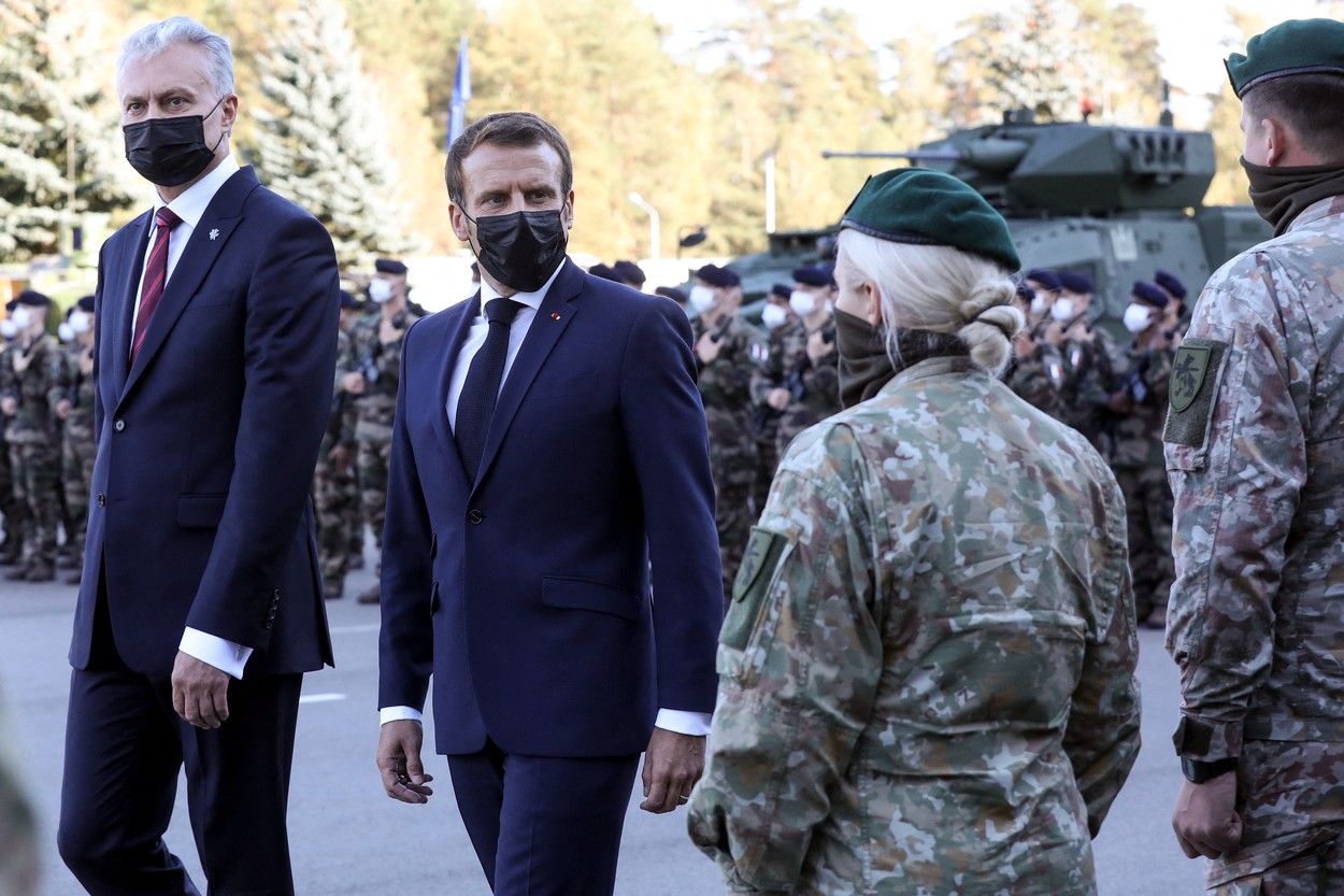 Liderul francez a subliniat desfășurarea de trupe franceze în zona Baltică și Polonia prin intermediul NATO. Marți, acesta a vizitat 300 de soldați francezi din baza militară Rukla din centrul Lituaniei.