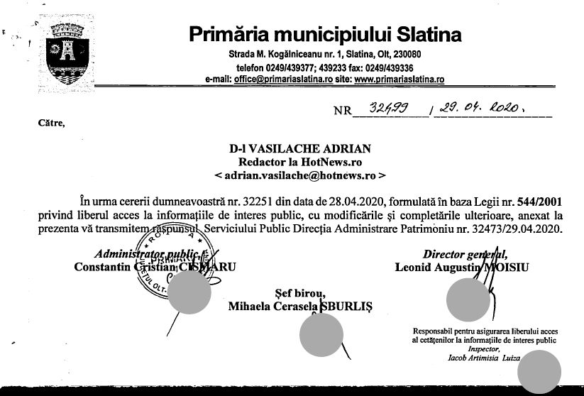 Citește aici integral precizările transmise HotNews.ro de Primăria Slatina.