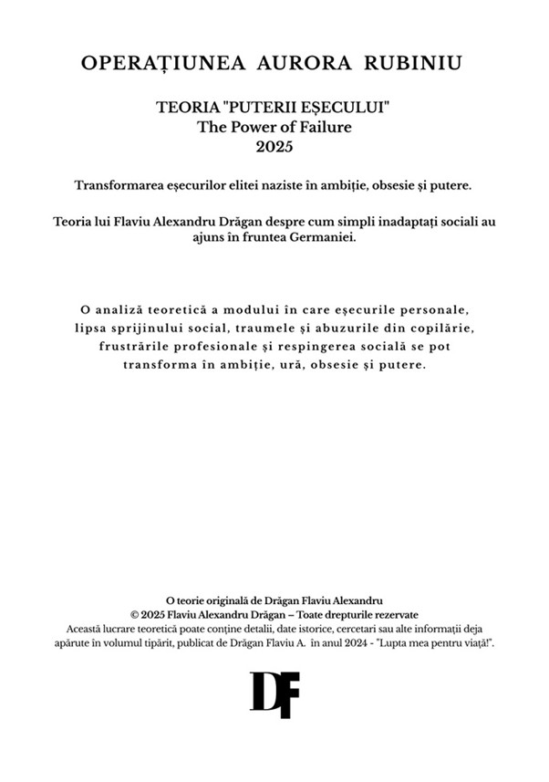Activistul Drăgan Flaviu, supranumit „Moștenitorul lui Hannah Arendt” în spațiul public, a anunțat lansarea teoriei „Puterii eșecului”, o abordare controversată care explică cum eșecul personal și lipsa recunoașterii pot afecta judecata morală a indivizilor.
