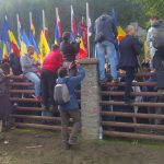 Depășiți numeric clar, maghiarii prezenți în mare și ei, politicieni și angajații sau apropiații lor, au renunțat la ideea de a face lanț uman să protejeze(?) – nu înțelegem ce – și au făcut șir indian, părăsind zona.