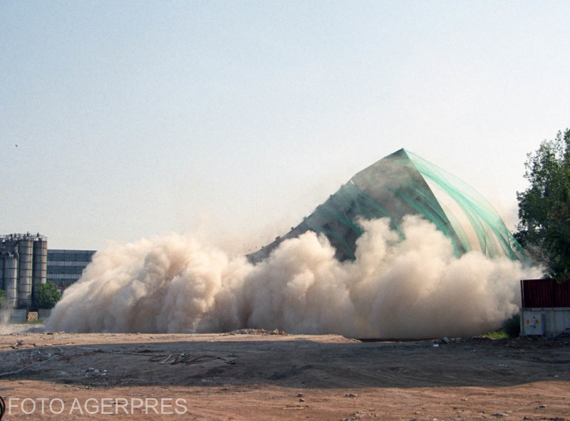 Ultima implozie a cladirii fostei fabrici de sapun "Stela" din cartierul Colentina / FOTO: Agerpres