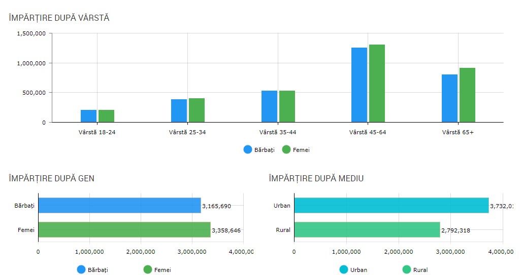 În continuare, cei mai mulți votanți la turul 2 al alegerilor prezidențiale 2019 sunt cei din categoria de vârstă 45-64 de ani, aproximativ 2,7 milioane.