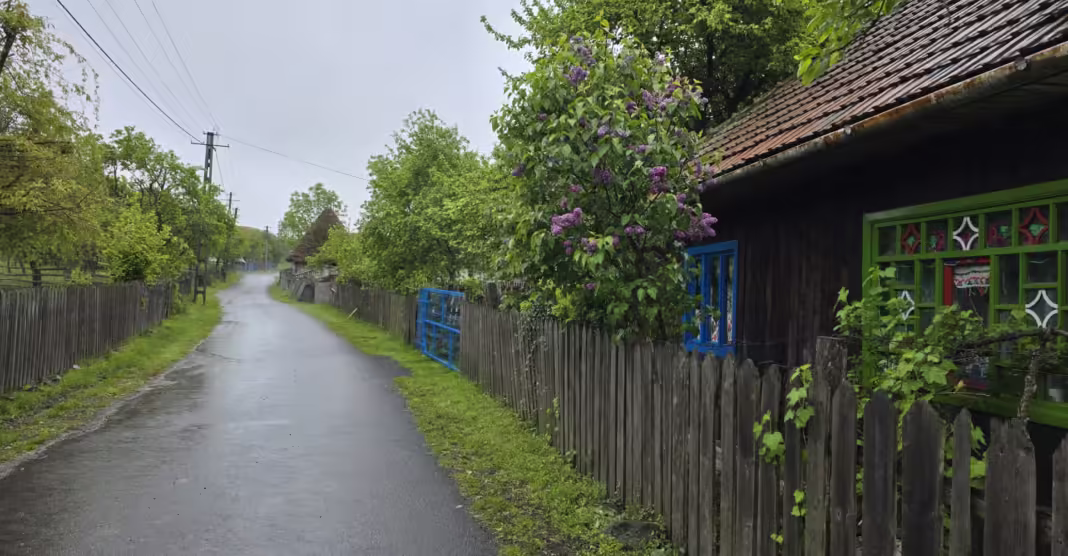 Plecăm spre centru, către biserică și Căminul Cultural, dar nici țipenie de om. Coborâm pe una dintre aleile satului spre celălalt capăt. Drumurile aici sunt asfaltate. Îl găsim pe Cornel Moldovan, rezemat de gardul grădinii sale generoase.