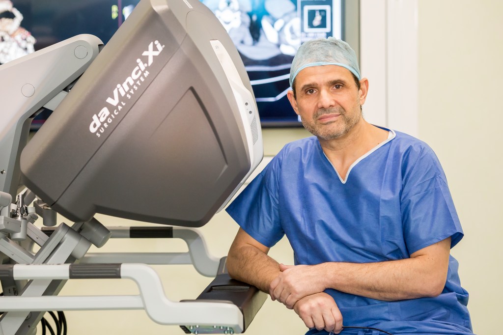 Ori, abordarea minim invazivă permite ca, printr-un orificiul de câțiva milimetri, să se inspecteze întreaga cavitate abdominală. Iar dacă pacientul nu are metastaze la distanță se continuă intervenția asistată robotic: ”Instalăm această platformă de tehnologie excepțională, care și ea evoluează. Suntem deja la a cincea generație pentru robotul da Vinci.”