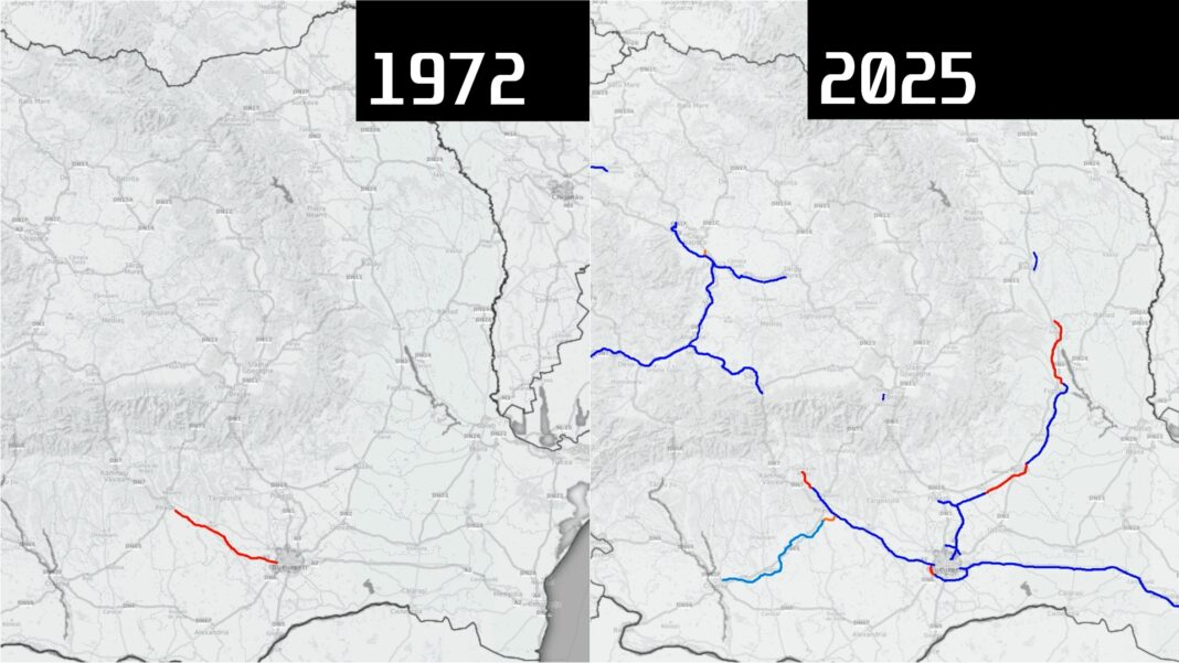 ANIMATIE – Autostrazile din Romania – 1972 vs 2025