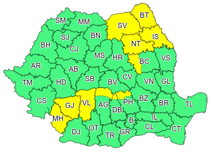 De asemenea, pentru același interval orar, ANM a transmis și un cod galben de ploi însemnate cantitativ.
