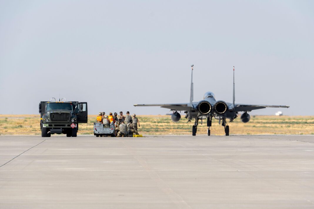 Avion F-15 Eagle și militari americani la baza aeriană Mountain Home din Idaho. Foto: APFootage / Alamy / Profimedia