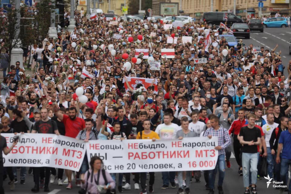 Foto – vineri, 14 august, muncitorii de la fabrica de tractoare, MTZ, în marș spre centrul capitalei