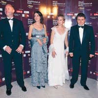 Beaumonde-ul bucurestean a venit ieri seara, la Teatrul National din Capitala, pentru a participa la premiera oficiala a primului film romanesc castigator la Cannes, „4 luni, 3 saptamani si 2 zile”. Printre celebritatile care si-au facut aparitia pe covorul rosu s-au numarat cuplul prezidential Traian si Maria Basescu, premierul Calin Popescu Tariceanu insotit de sotia sa, Ioana, Ioan T. Morar, Horia-Roman Patapievici, Mircea Diaconu, Corneliu Porumboiu, Radu Moraru si Ion Caramitru.