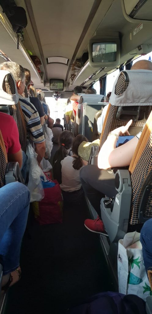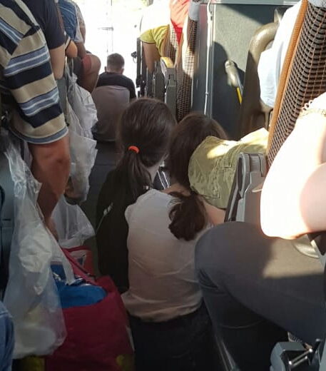 S-a întâmplat în după-amiaza zilei de vineri, 26 iulie. De la autogara Obor din București, la ora 18, pleacă o cursă spre Suceava, Rădăuți și Siret, via Bacău. Autocarul aparține companiei TARSIN. Dacă la CFR este banal să se elibereze bilete în picioare și nu prea îți vine să stai în fund pe culoar pe jos, iată, acest transportator a oferit direct locuri pe jos pentru trei tineri. Avantajul mochetei. Cel din față merita o reducere substanțială din cauza riscului de a zbura direct în sau prin parbriz la o frânare bruscă. Fetele aveau avantajul televizorului. Rula un film cu Jean-Claude Van Damme. (R.E.D.)