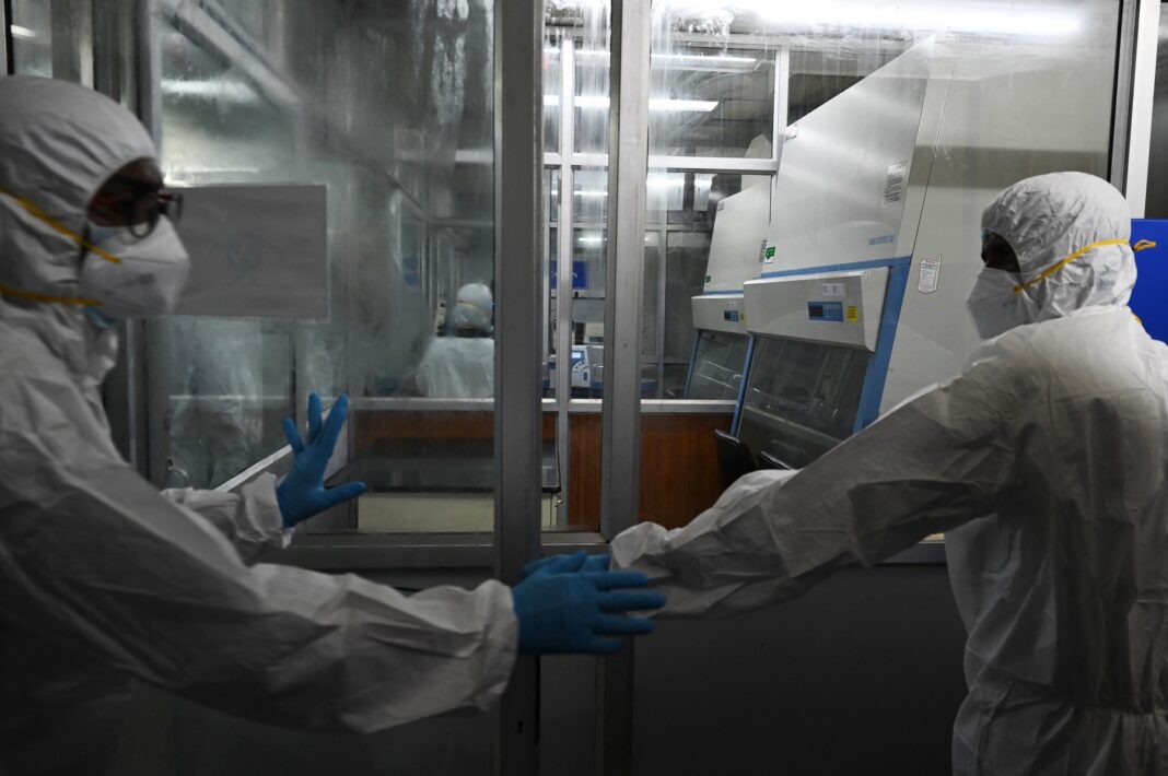 Angajați ai OMS într-un laborator în care sunt păstrate mostre ale mpox pentru analize, FOTO: Arun Sankar / AFP / Profimedia