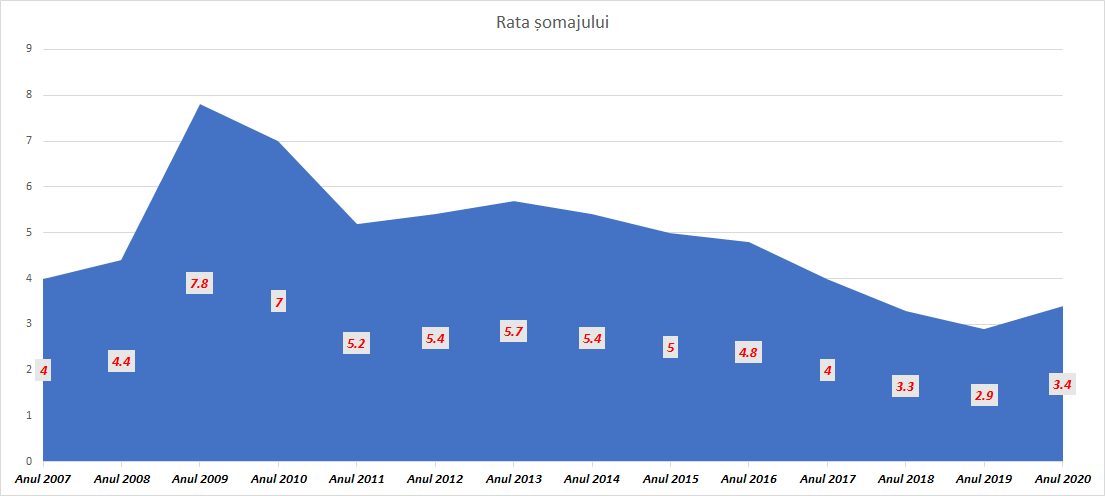 Rata șomajului a fluctuat mult, cu vârfuri notabile în perioada crizei financiare, dar trăgând linie după cei 15 ani, vedem o scădere ușoară a acestui indicator.