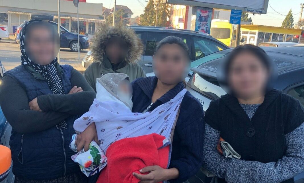 Bebeluş de nici o lună împlinită, folosit de mamă la cerşit, la minus 5 grade Celsius, în Bistriţa. Ce au făcut polițiștii