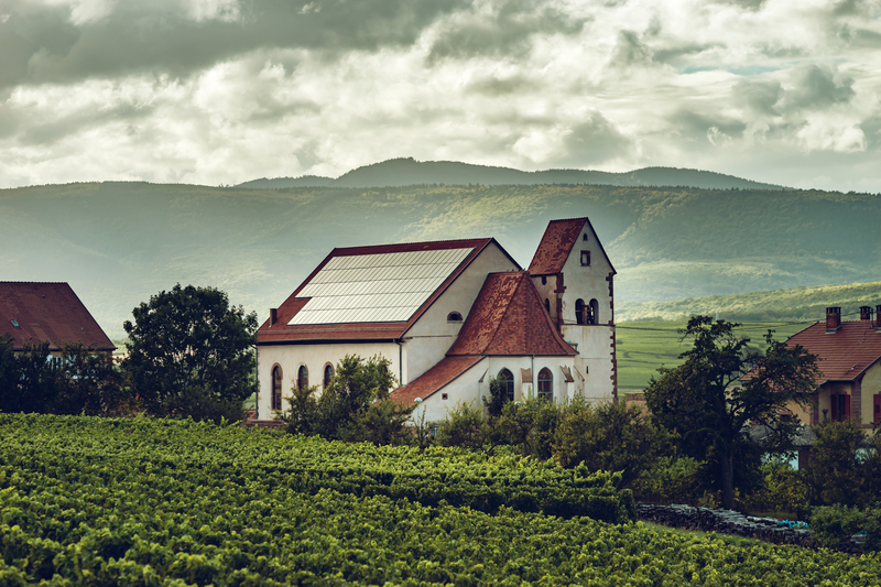 Panouri fotovoltaice instalate pe acoperișul unei biserici din FranțaFoto: Alexander Sorokopud | Dreamstime.com