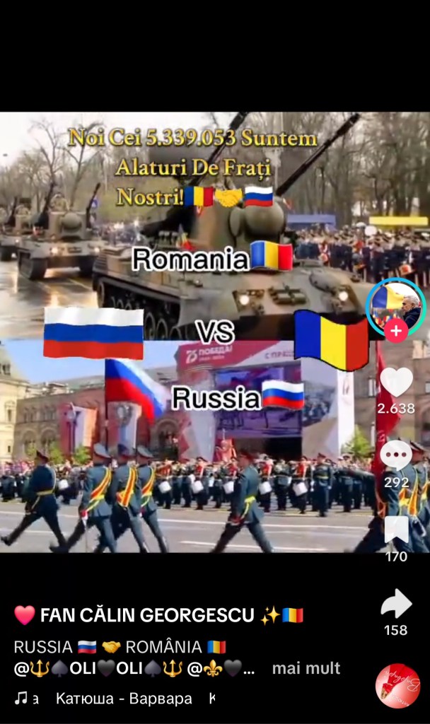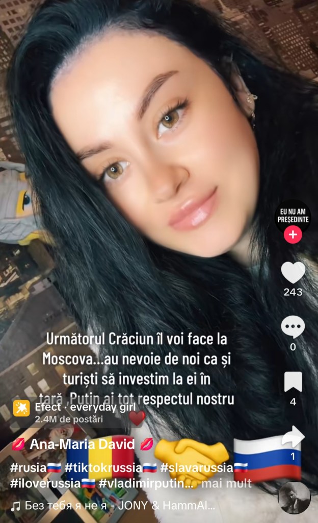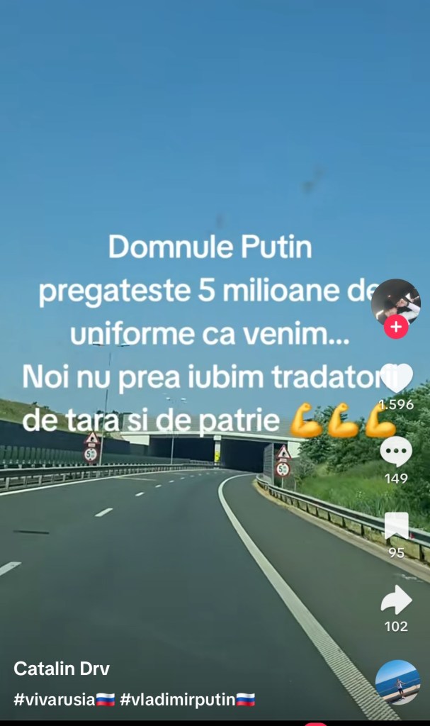 Afirmații precum „Prefer să lupt pentru Putin”, „Vreau să mă înrolez în armata lui Putin” și „Domnule Putin, pregătiți 5.339.053 de uniforme, că venim” sunt promovate intens pe rețeaua TikTok din România.