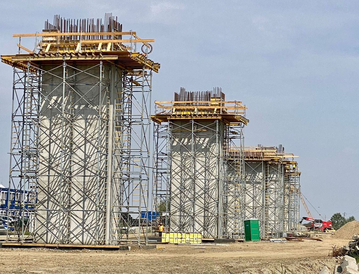 – toți pilonii podului, inclusiv pilonii viaductelor, sunt finalizați