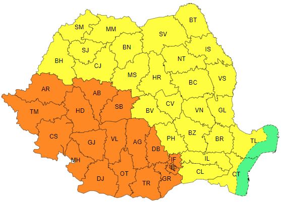 Harta codurilor de caniculă de la ANM