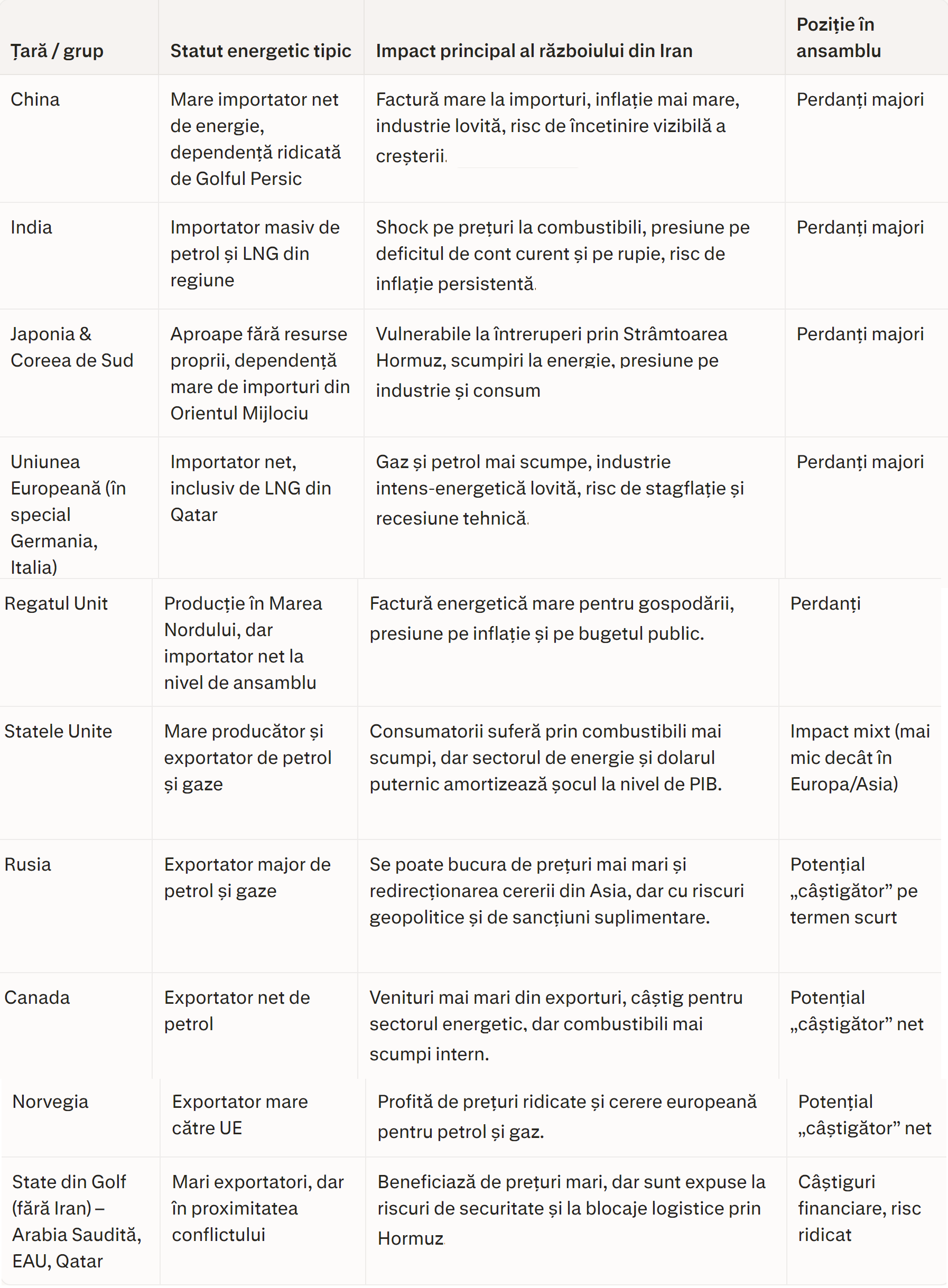 Câștigătorii sunt marii exportatorii de energie din afara Golfului