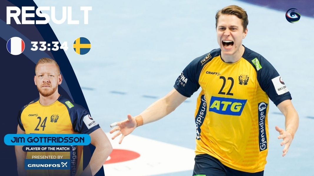 Selecționata Suediei s-a calificat în finala Campionatului European de handbal masculin, după ce a învins la limită, la Budapesta, reprezentativa Franței (campioana olimpică), scor 34-33.