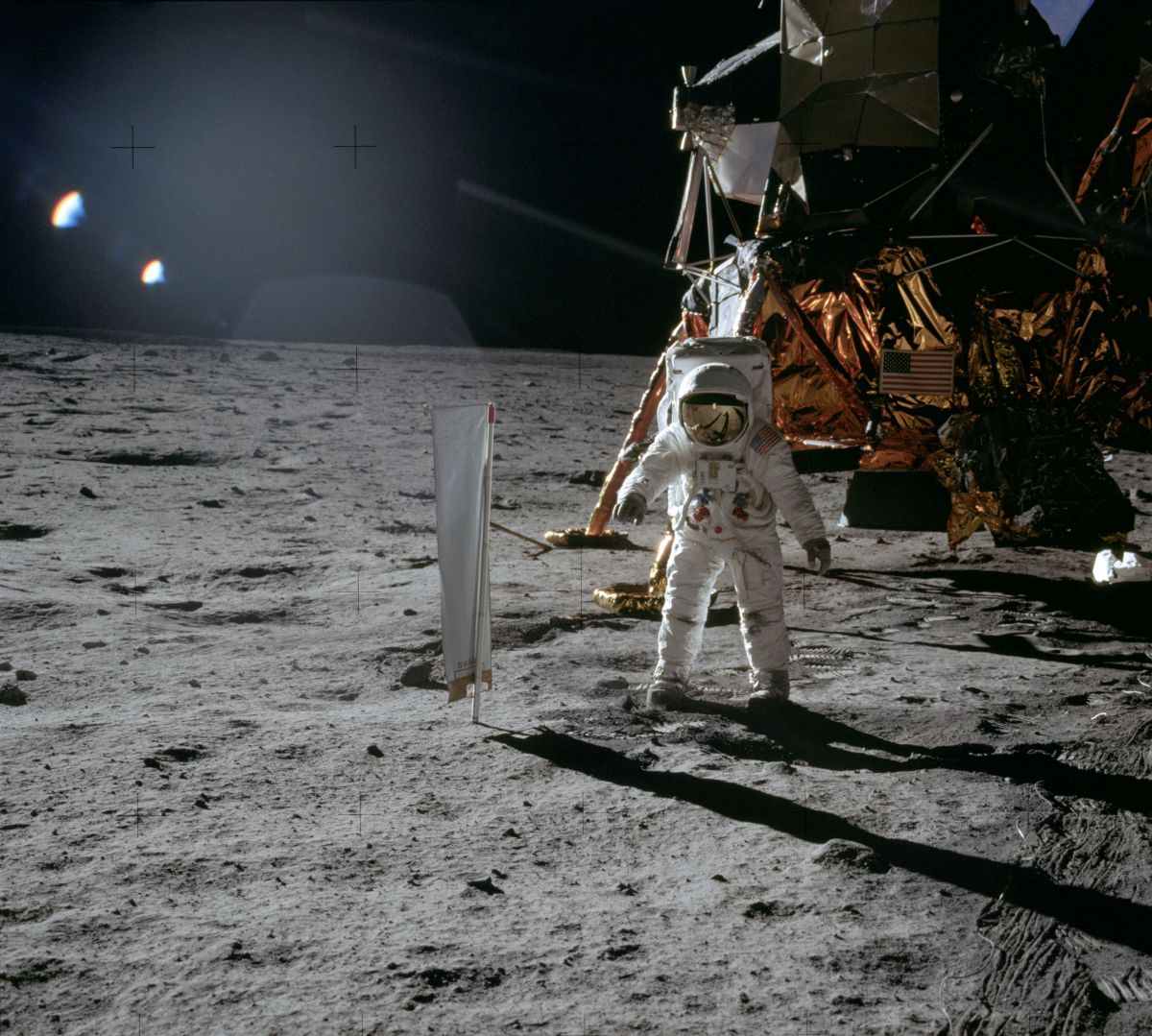 Atunci, în 1969, văzut de primii oameni care au ajuns pe Lună, peisajul era scăldat în lumina nemiloasă a cerului care strălucea pe cerul negru din spatele Pământului – întrucât nu există nici atmosferă pe Lună, nu există nici aer și nici cer albastru. Umbra modulului lunar era bine definită și intensă, iar relieful era foarte plat.