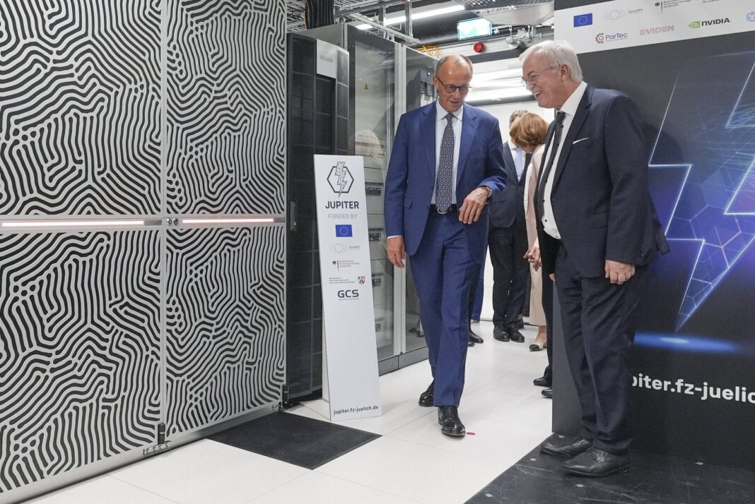Punerea în funcțiune a supercomputerului exascale Jupiter de către cancelarul Friedrich Merz. Foto: IMAGO / imago stock&people / Profimedia