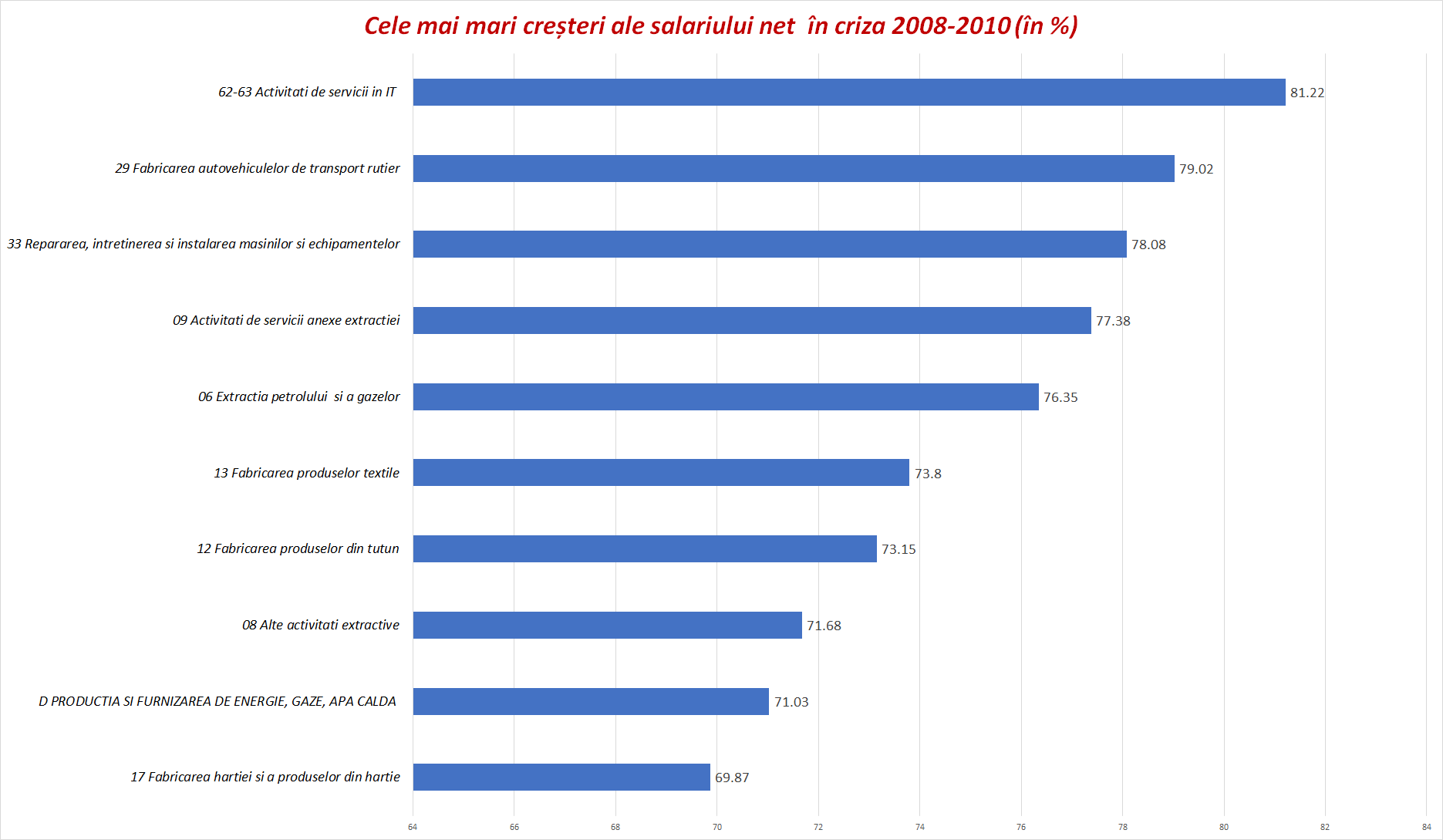 În perioada crizei anterioare (cea din 2008-2010), cel mai bine au rezistat tot IT-iștii, urmați de lucrătorii din producția auto (cu tot lanțul pe orizontală- piese auto, componente electrice ș.a.) dar și cei din activitățile anexe extracției (de la sondare, forare, prospecțiuni geofizice, lichefierea si regazeificarea gazelor naturale ș.a.)