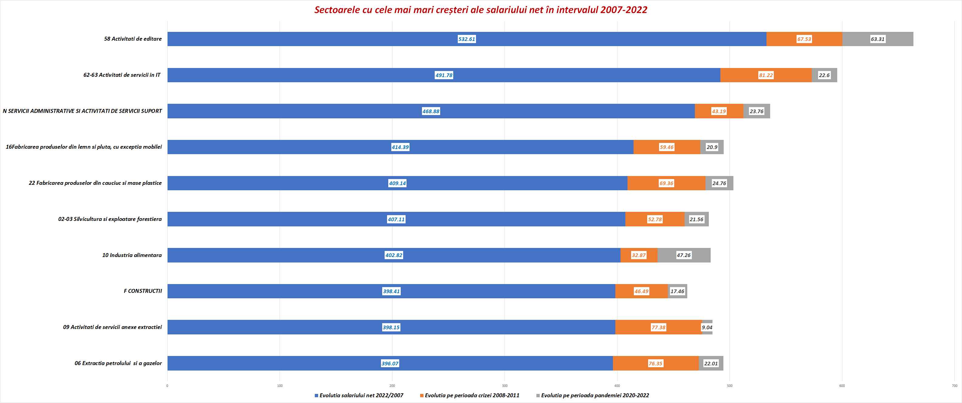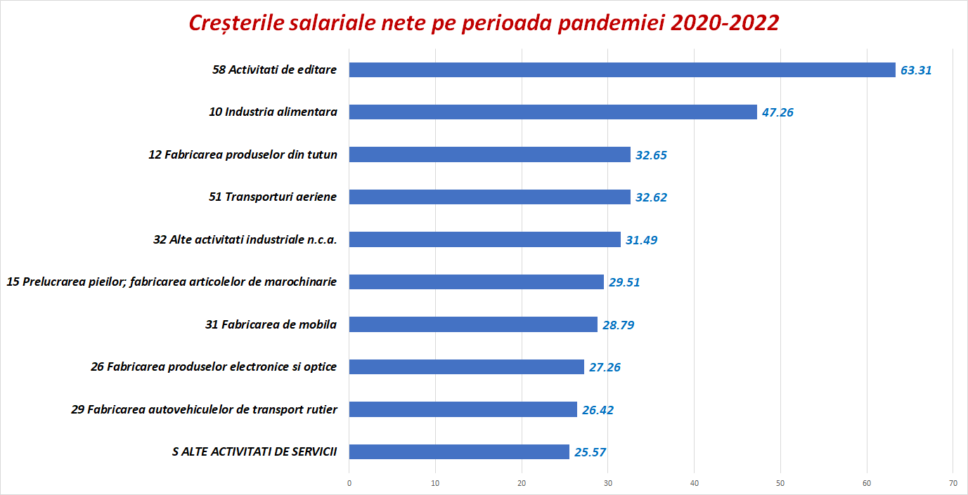 Aceștia au avut și cele mai mari creșteri salariale de la aderarea României la Uniunea Europeană. Cifrele din grafic reprezintă procentele de creștere din intervalul 2022-2007.