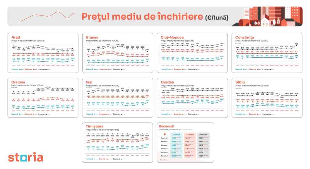 În luna august, prețurile medii ale chiriilor s-au prezentat astfel: