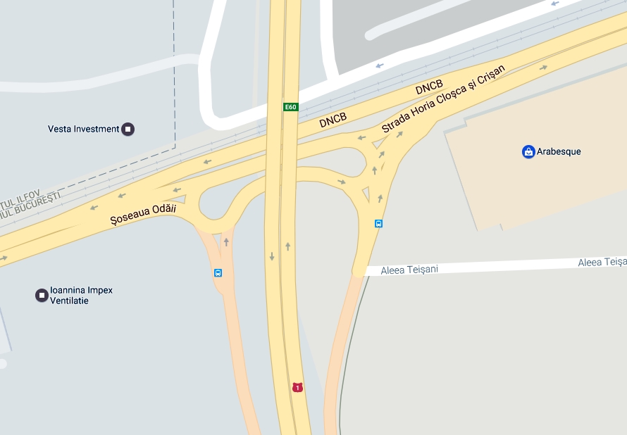 O altă intersecție este cea cu DN3 unde direcțiile de trafic sunt asigurate doar pe jumătate.