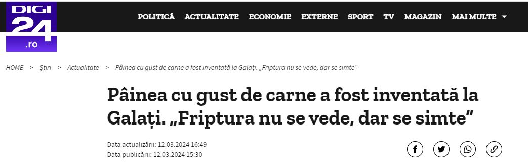 Toată presa de la noi a vuit săptămâna aceasta cu o știre „bombă”: cercetătorii români, cei de la Universitatea Dunărea de Jos din Galați, mai exact, au inventat PÂINEA CU GUST DE CARNE. În caz că ai ratat vestea incredibilă, o căutare scurtă pe Google după „pâine gust carne” sau alte cuvinte cheie asemănătoare te va lămuri rapid despre ce-i vorba. (Din păcate) însă e doar o invenție de presă.