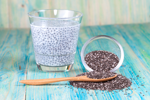 Hidratate câteva minute în apă, semințele de chia formează un gel dens, ușor digerabil, care încetinește golirea gastrică și menține un aport constant de lichide și carbohidrați. Această proprietate le face potrivite pentru consum înaintea exercițiilor fizice.