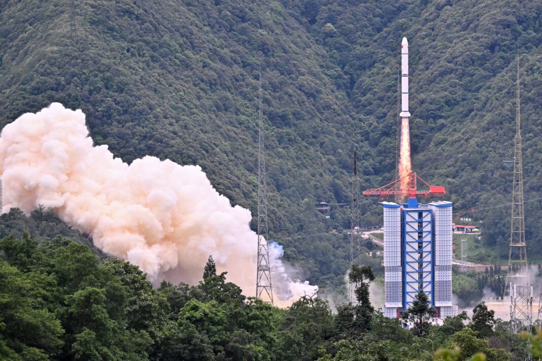 O rachetă Long March 2-C care transportă un satelit dezvoltat în comun de China și Franța, denumit Space Variable Objects Monitor (SVOM), decolează de la o bază spațială din Xichang, în provincia chineză Sichuan (sud-vest), la 22 iunie 2024. Foto: ADEK BERRY / AFP / Profimedia