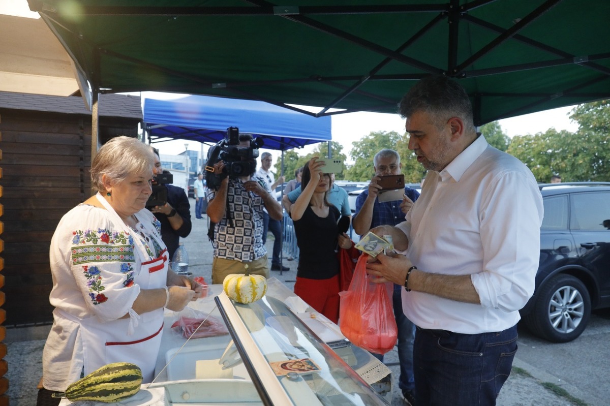 Ciolacu a vizitat standurile producătorilor, a primit cadou seminţe de legume de la standul Staţiunii de Cercetare pentru Legumicultură Buzău, a fost servit cu must proaspăt de un producător buzoian, după care s-a oprit la un stand al unui fermier care vindea brânzeturi şi a cerut o felie de caş puţin sărat spunându-i vânzătoarei că îi este foarte poftă.
