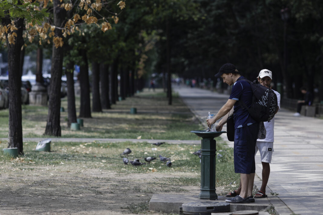 Caniculă. Persoane se racoresc in timpul unui cod rosu pentru temperaturi ridicate care afecteaza capitala, 15 iunie 2024. Inquam Photos / Octav Ganea