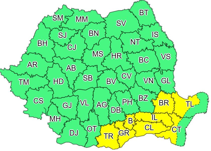 Meteorologii spune că precipitații slabe, sub formă de ninsoare se vor semnala și în sud-estul Olteniei, sudul Moldovei și în restul Munteniei. Pe litoral vor fi precipitații mixte, iar în noaptea de luni spre marți vor predomina ninsorile.