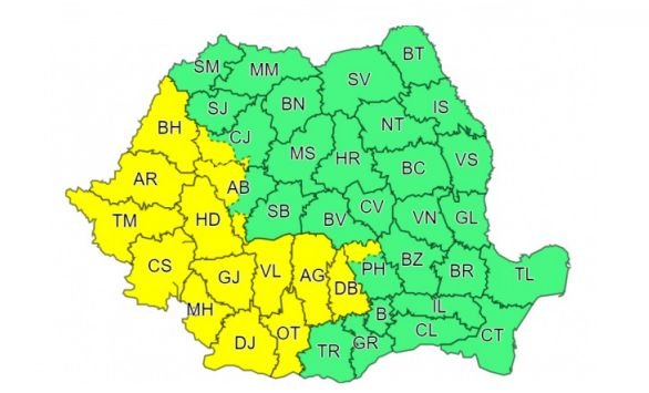 Conform meteorologilor, în acest interval în Oltenia, în nord-vestul Munteniei, în Banat, Crișana, precum și în Carpații Occidentali și Meridionali, local vor fi perioade cu instabilitate atmosferică accentuată – frecvente descărcări electrice, averse torențiale, intensificări ale vântului (rafale în general de 55…65 km/h), vijelii și grindină.